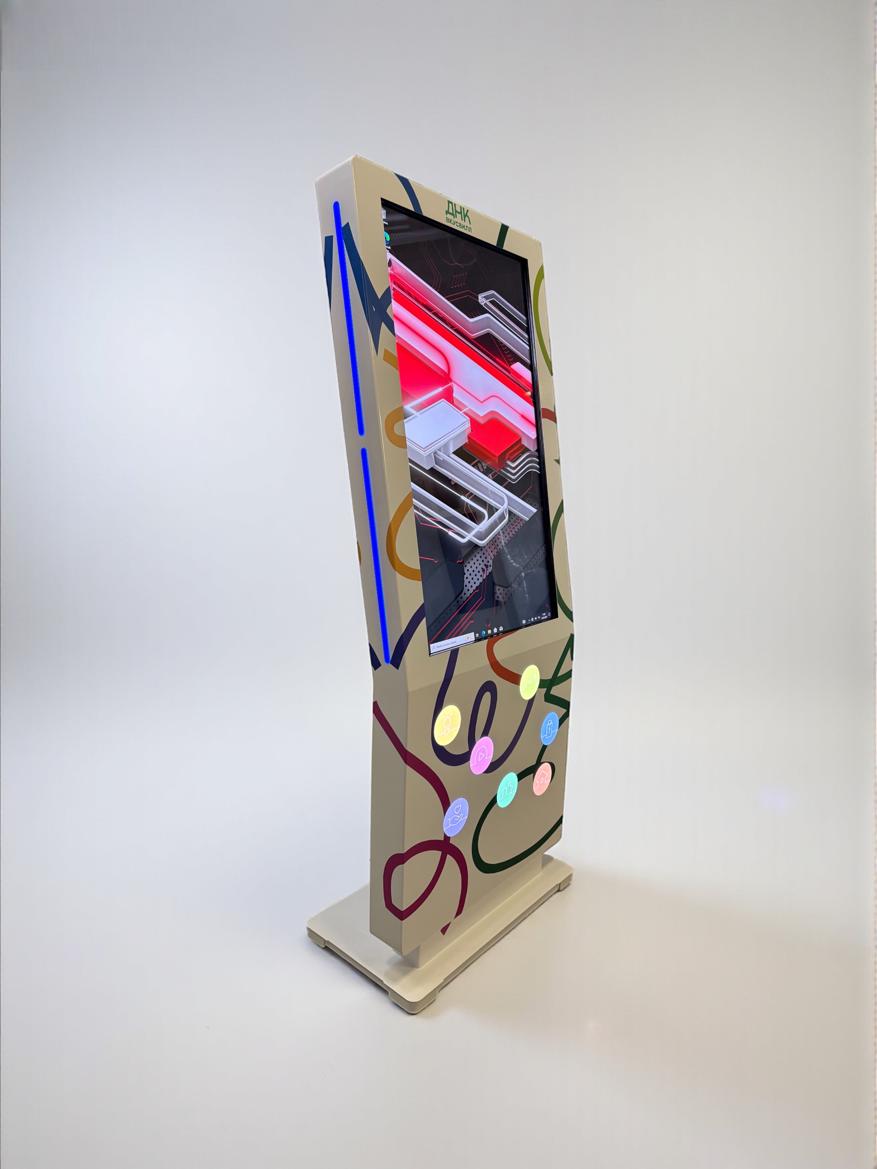 Прекрасное решение для отображения полной информации о компании, сотрудниках, ближайших мероприятиях, а также о специальных предложениях. Большой сенсорный экран, который поддерживает до 20 одновременных касаний, стальной антивандальный корпус с комфортным углом наклона являются преимуществами модели Grate 43". Светодиодная боковая подсветка интерактивного киоска и возможность выбора цвета из каталога RAL станут неотъемлемой частью вашего корпоративного стиля.