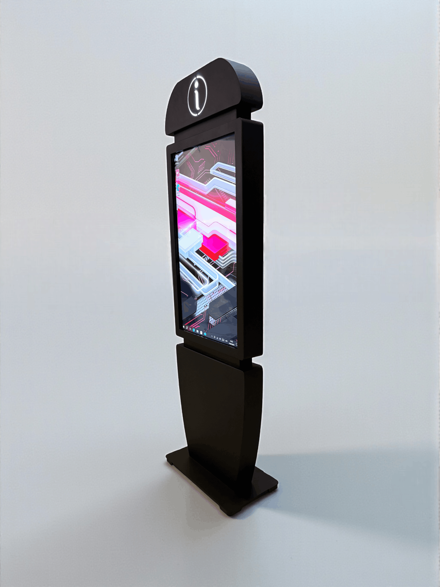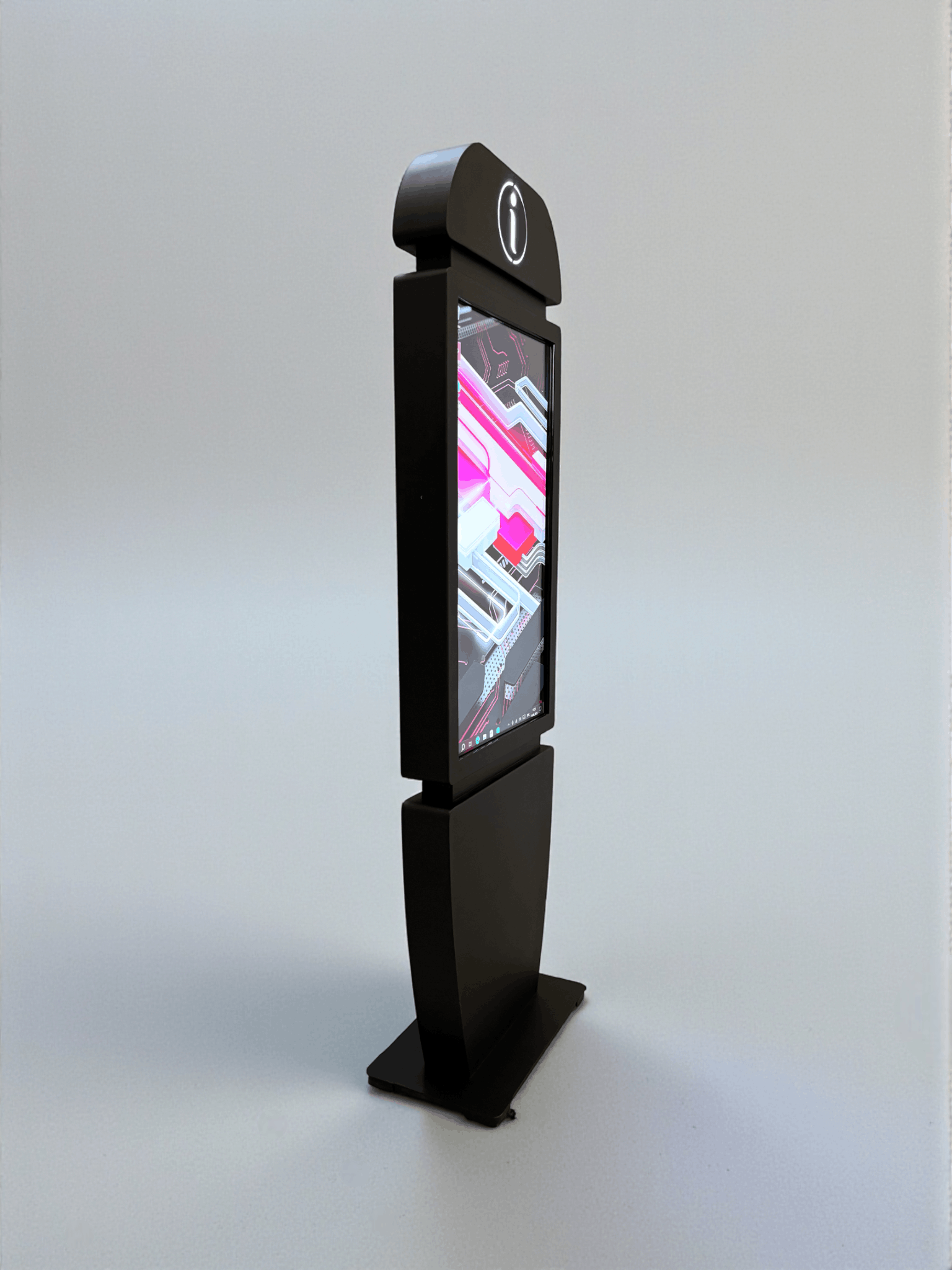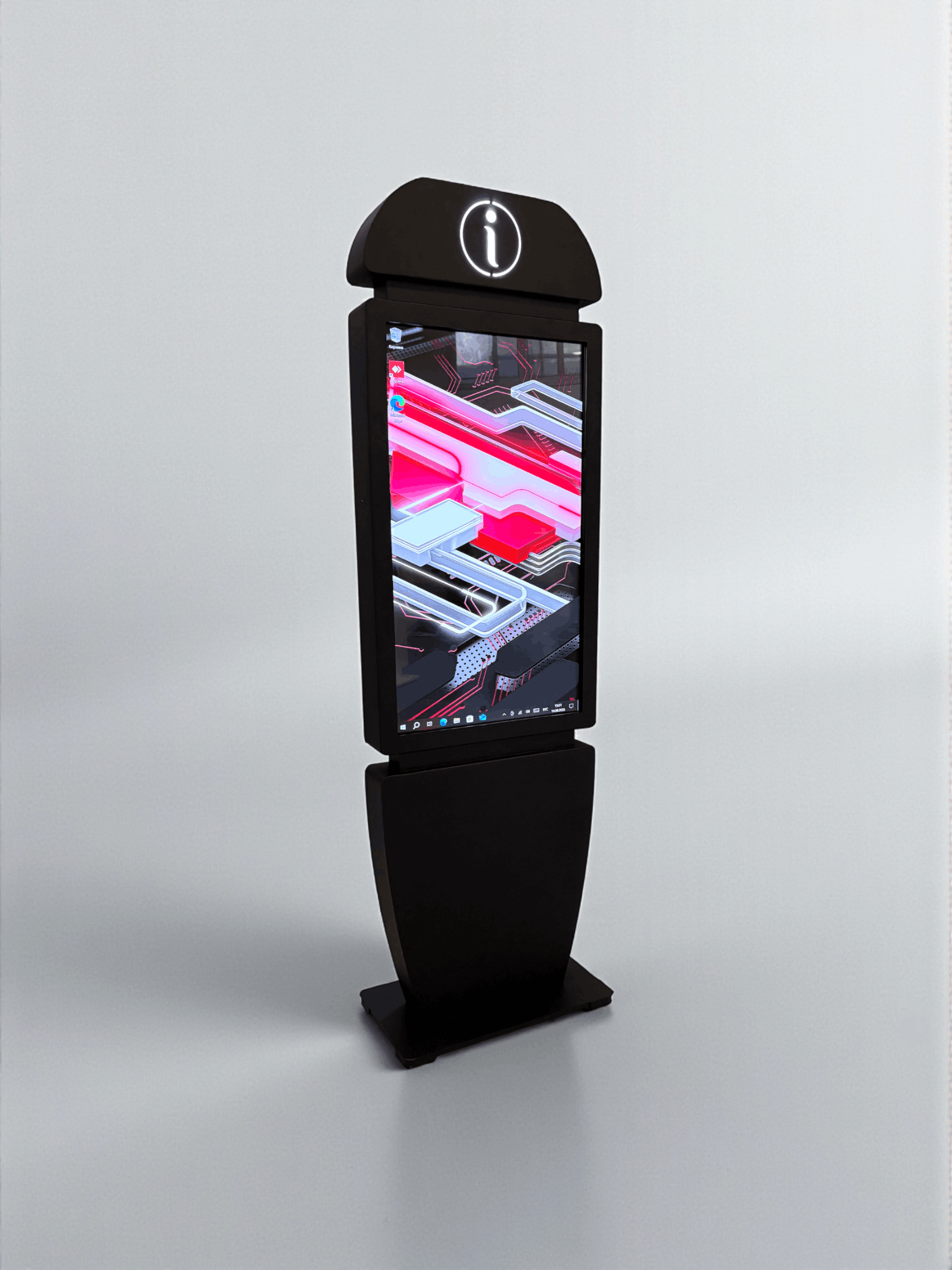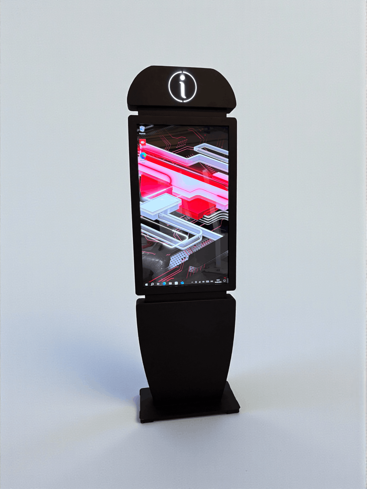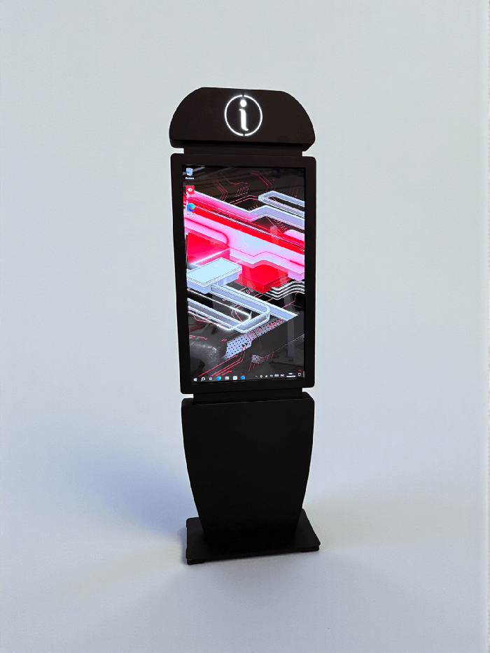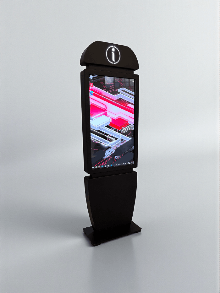 Сенсорный киоск Info 43" — это современное устройство для предоставления оперативной информации в общественных местах. Его утонченный дизайн, мультитач-система и подсвеченный символ "i" делают киоск легко узнаваемым и интуитивно понятным для пользователей.