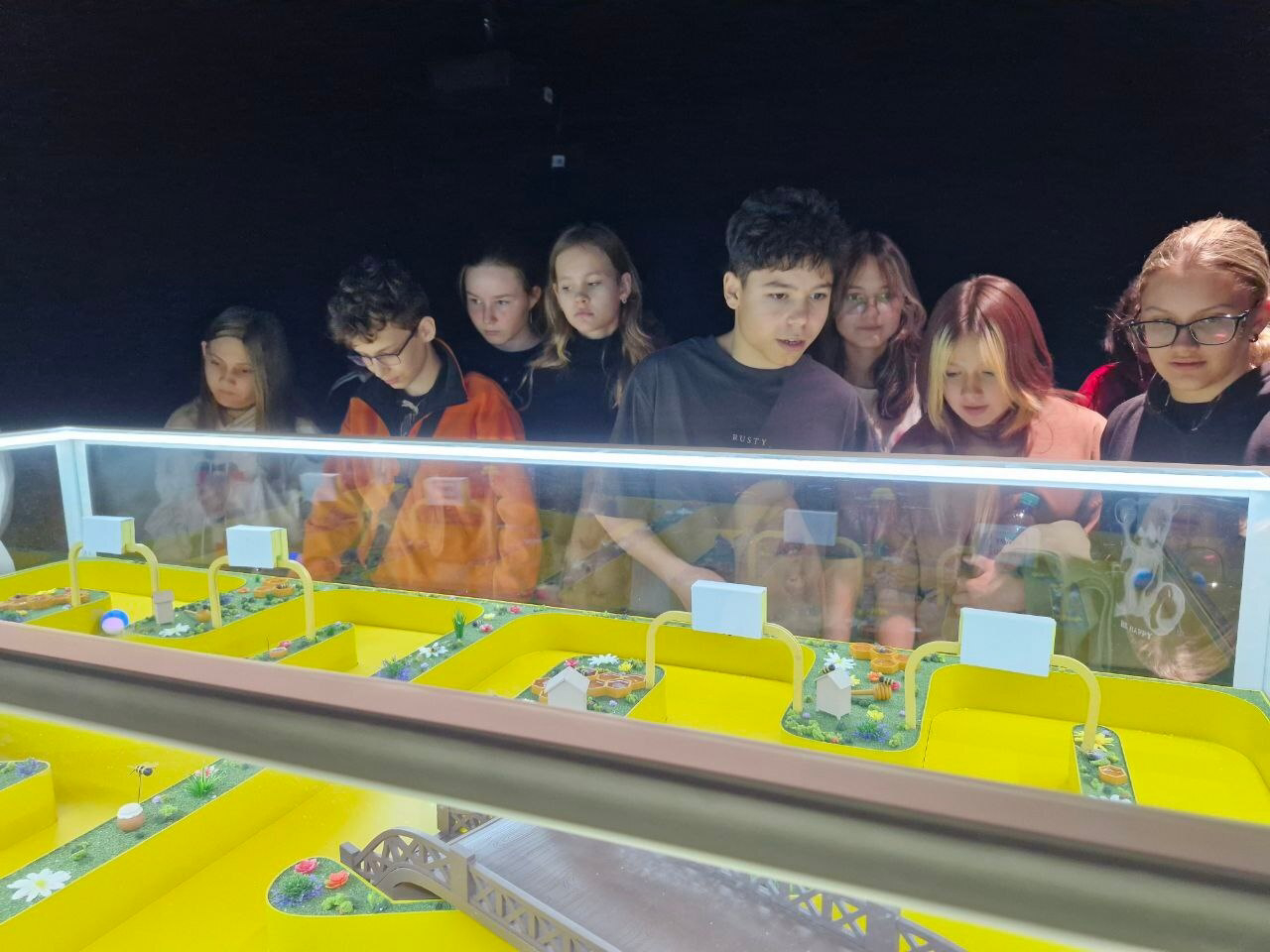 — воспроизведение игры: “Полоса препятствий”, которая заключается в управлении двумя роботизированными пчелками, посредством двух планшетов на базе Android. Задача каждого ребенка быстрее провести своего робота по полосе препятствий (улей/пасека), сделав 5 кругов по одному маршруту.;
