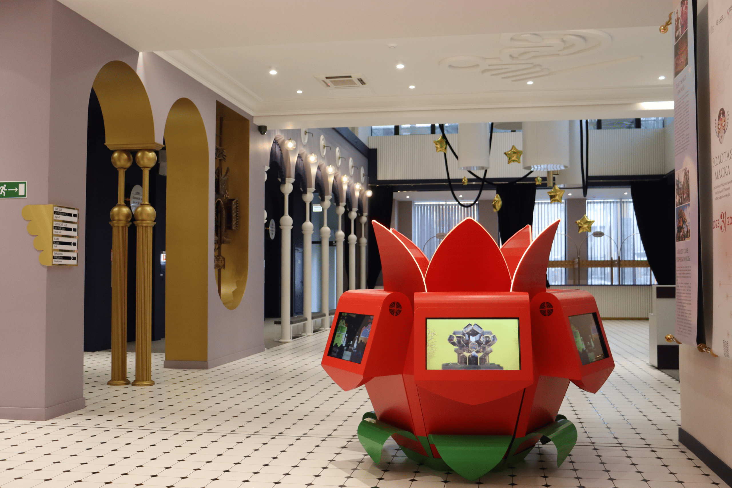 — терминал входной группы, в форме аленького цветочка, со встроенными интерактивными экранами на каждом лепестке;